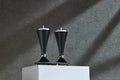 זוג פמוטים מחורצים עם מעמד לשבת, בציפוי אנודייז.